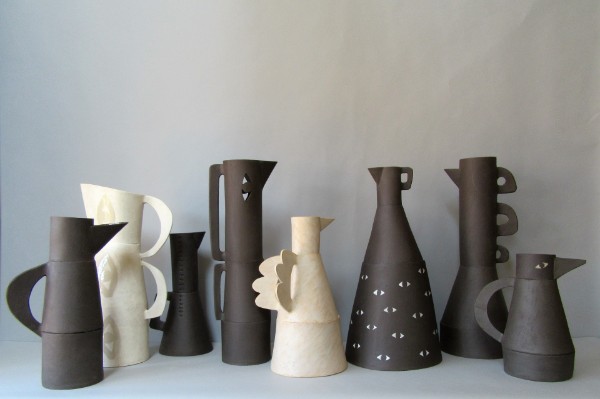 Al heel lang ben ik bezig met kannen, maar mijn werk blijkt bij nader inzien over mensen te gaan. Het zijn (bruikbare) vazen, maar zet je er een handvat of een tuit aan, dan ontstaat er een karakter met een eigen ‘lichaamstaal’. Dat fascineert me en daar raak ik niet op uitgekeken.